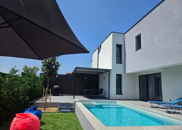 Situada a aproximadamente 25 minutos a pé de Arapya, a Villa Cadaques, Private Pool With Heating And Salt Water Lozenets dispõe de terraço com vistas para o jardim.